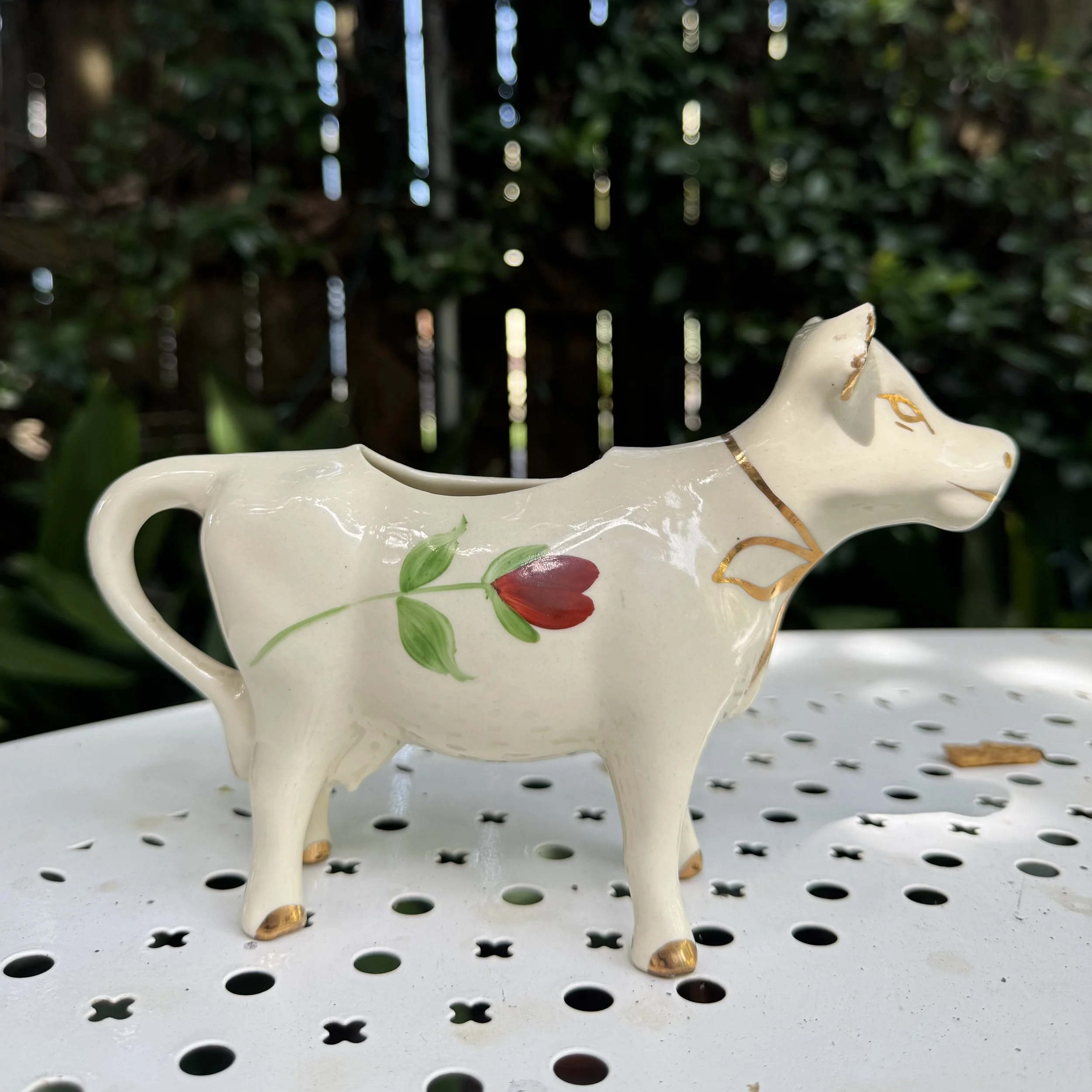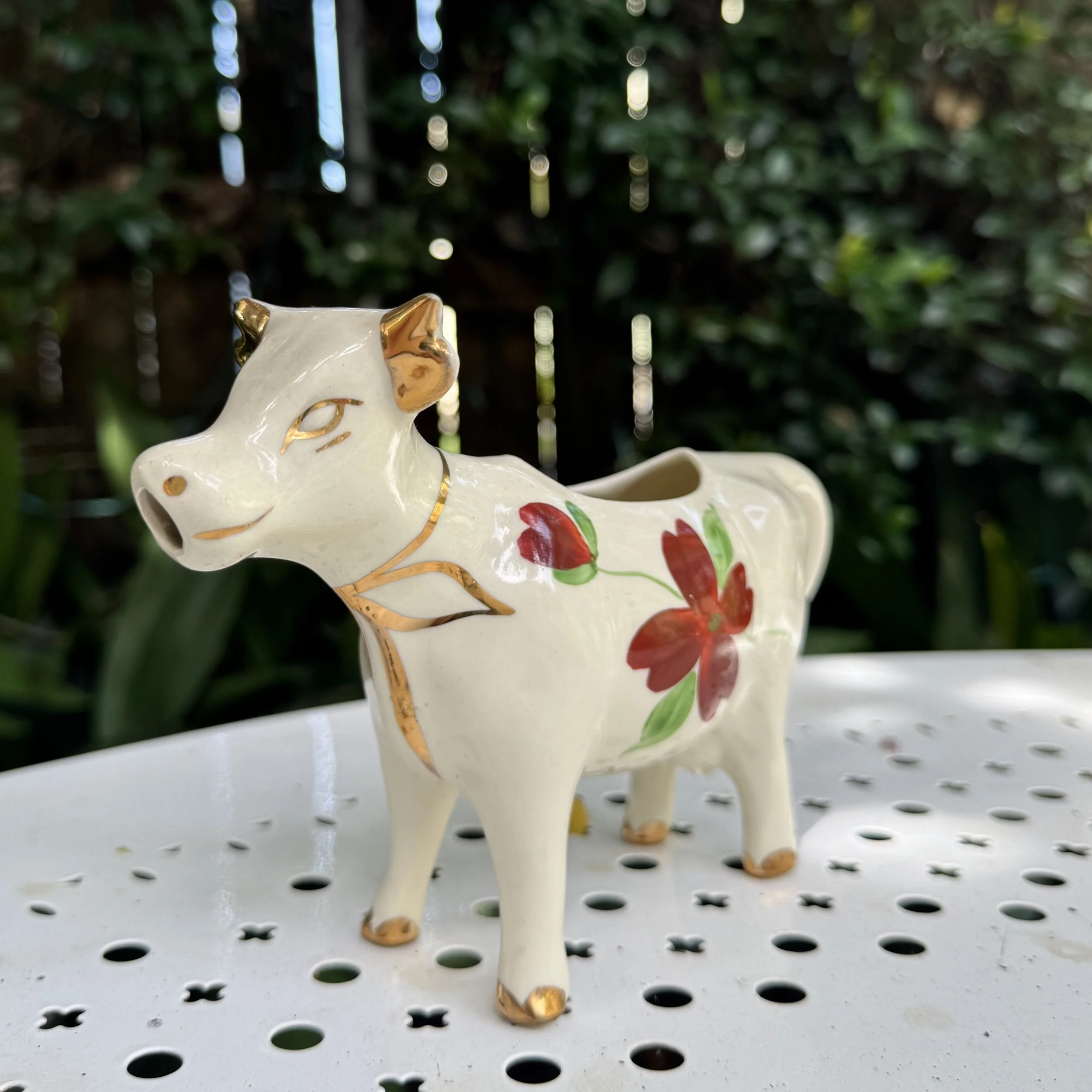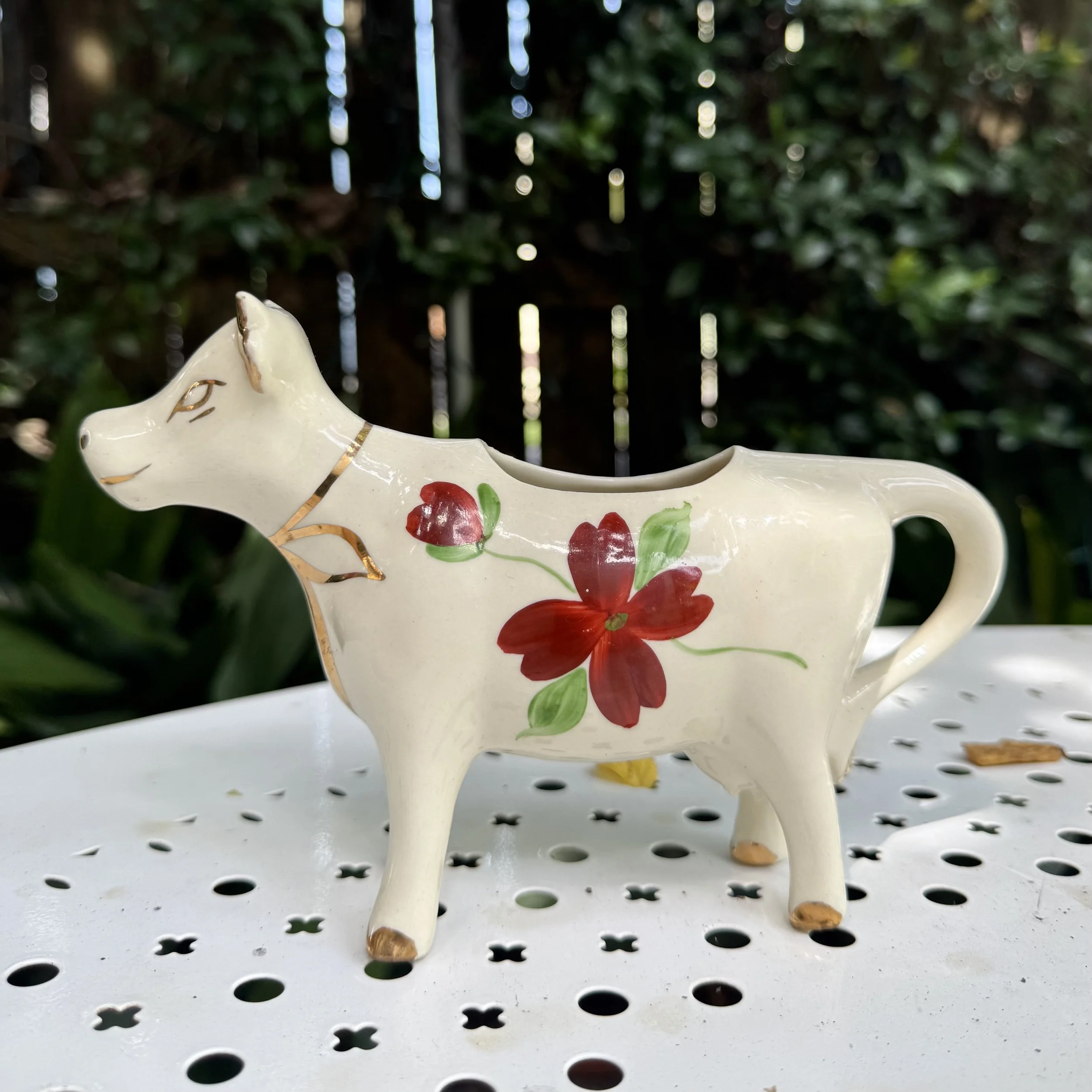 White Floral Painted Porcelain Cow Creamer