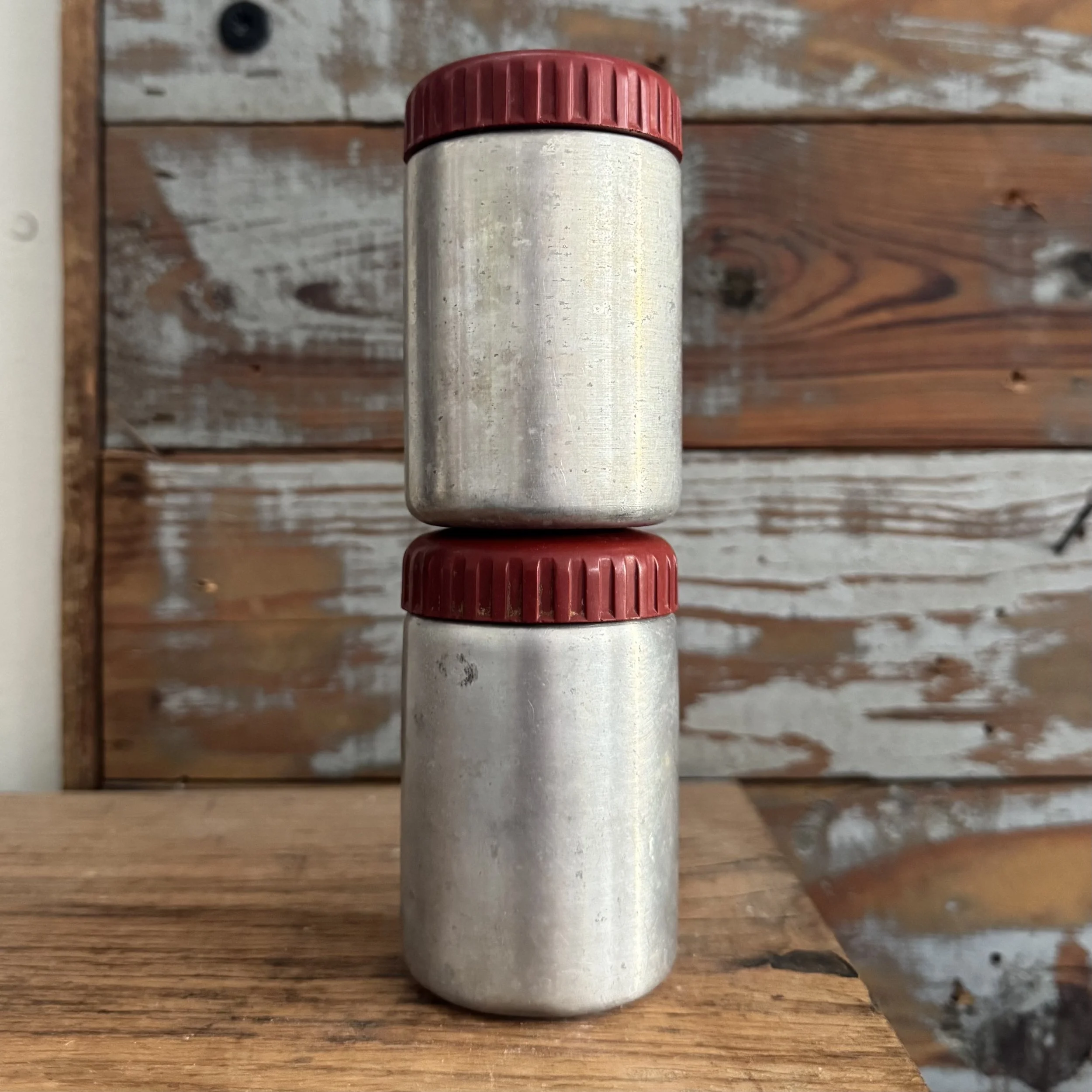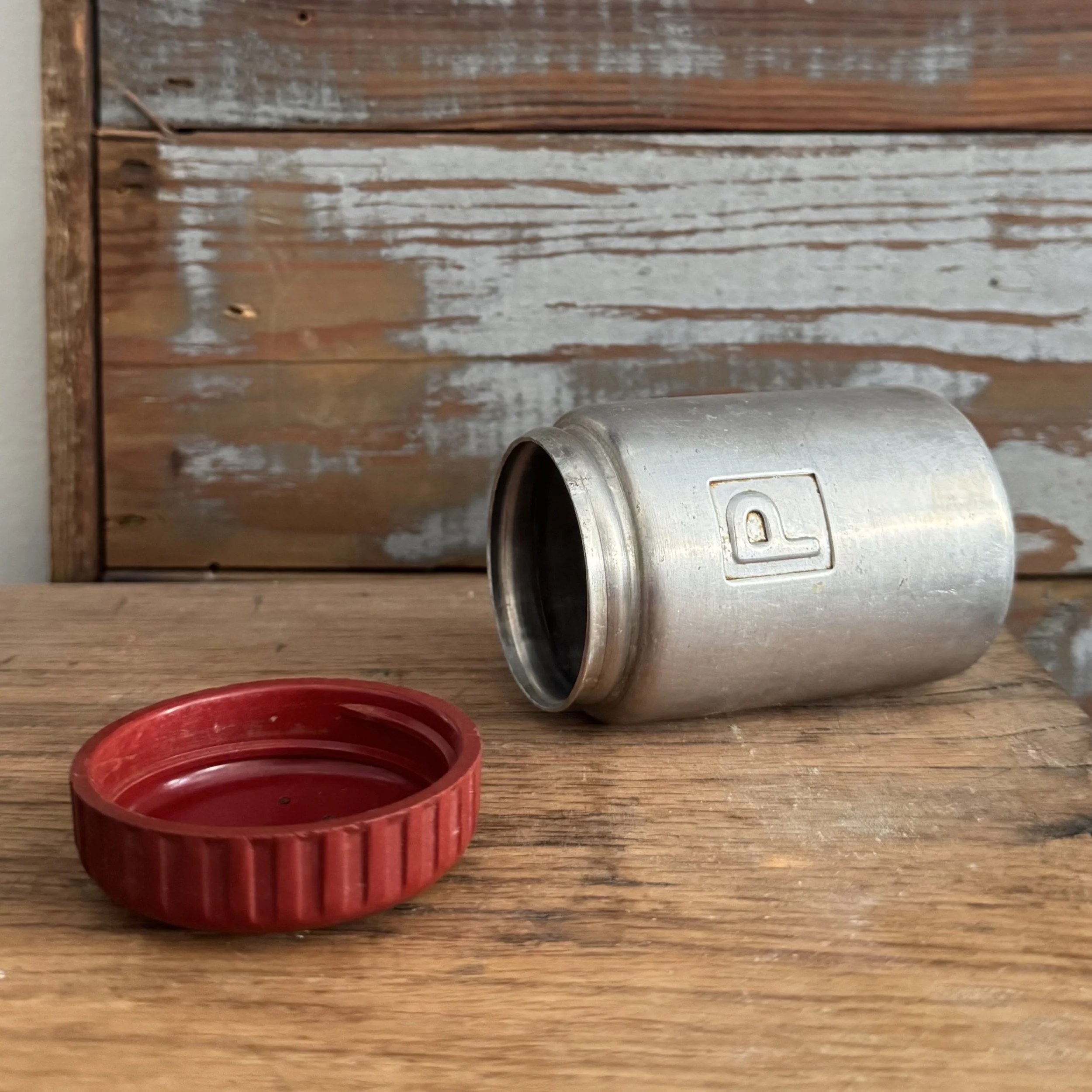 Dark Red & White Enamel Container