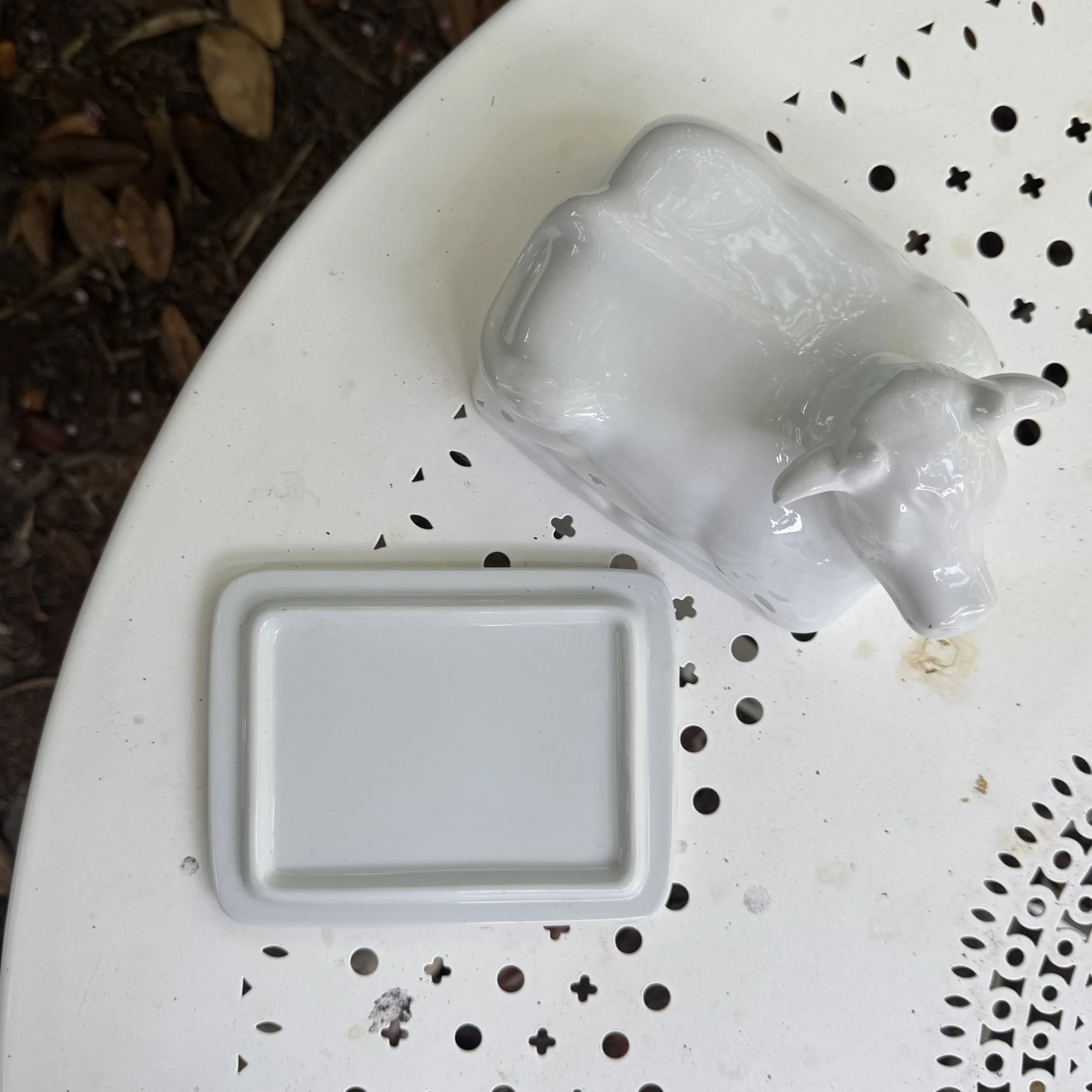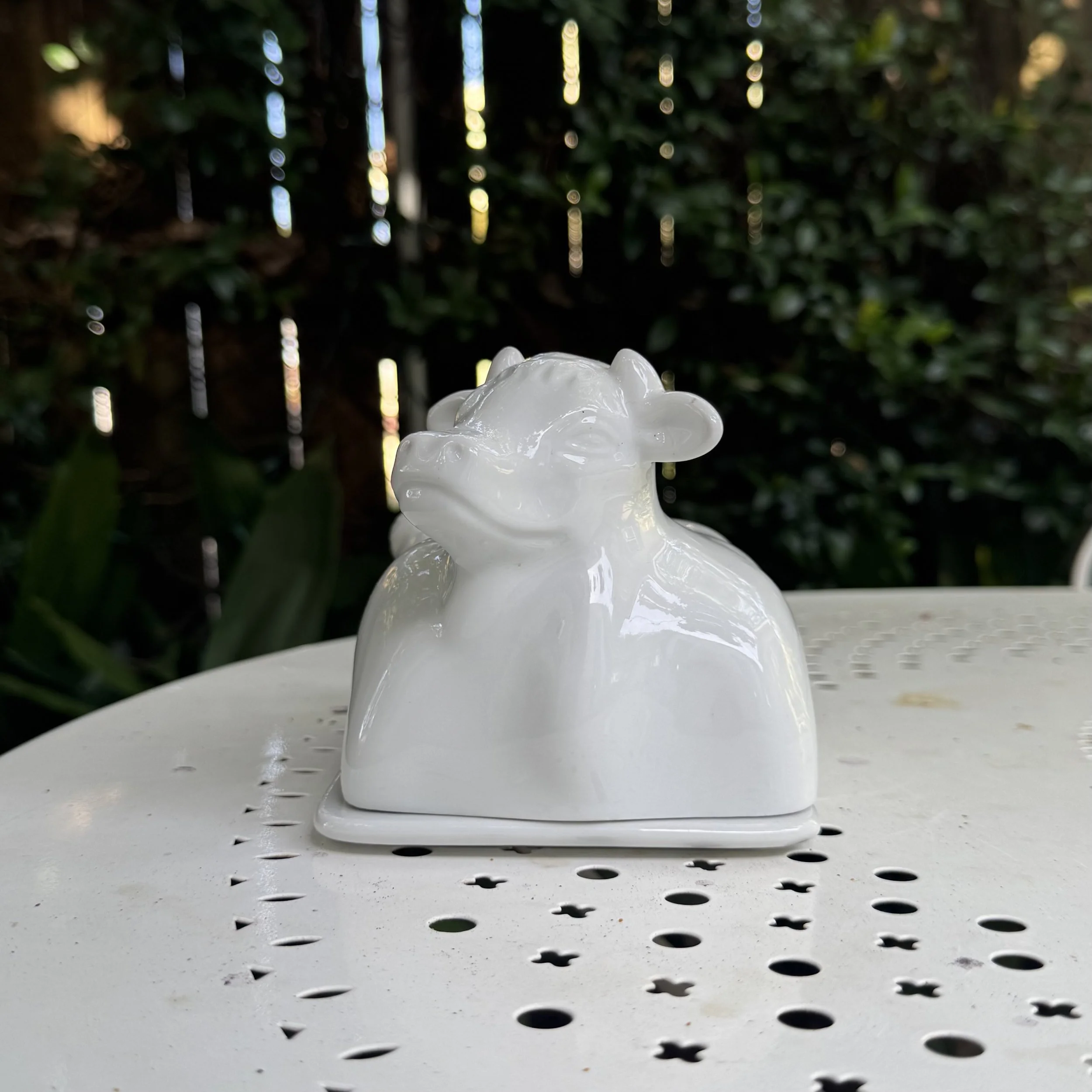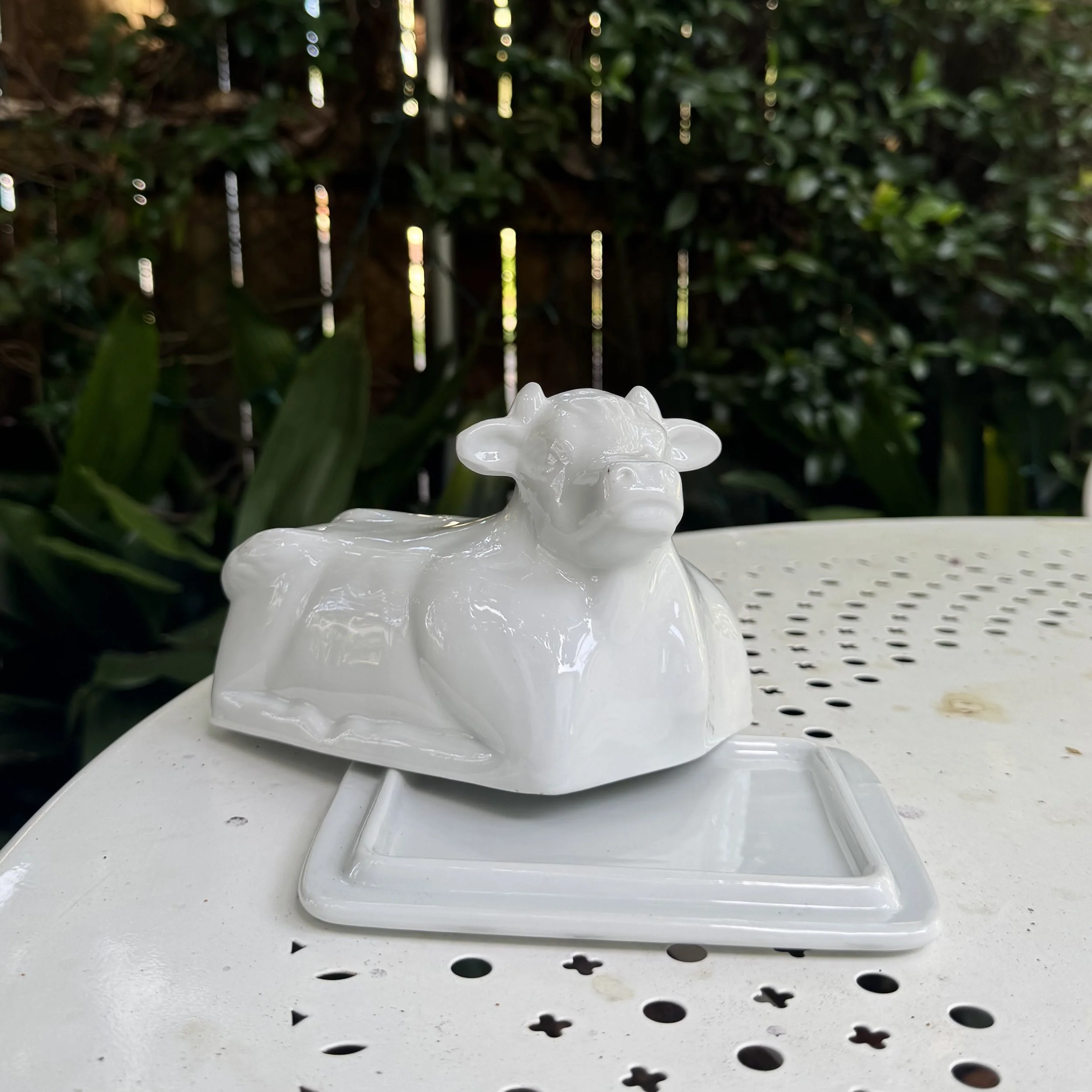 White 'Cordon Bleu' Ceramic Cow Butter Dish